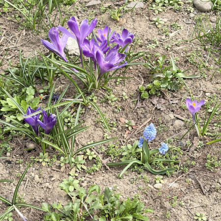 前回黄色いサフラン生えてんなぁからクロッカスも生えて更に春に。雨で一気にスイッチ入ったなこれ。